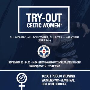 Die Blueladies vom Vienna Celtic Rugby Club laden dich am 20.9.2025 herzlich zum Try-Out ein:...